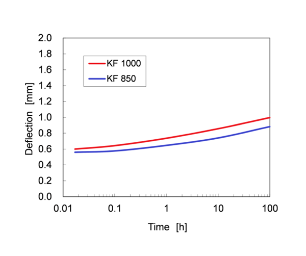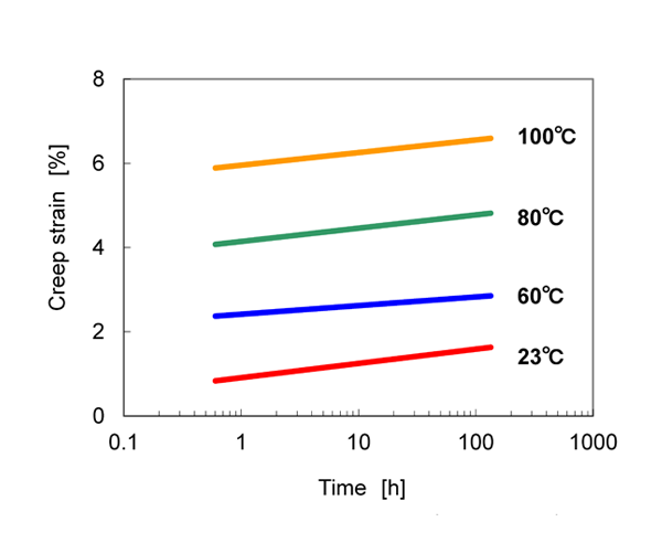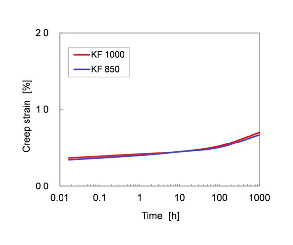 KF Polymer exhibits superior mechanical properties compared to other fluoropolymers due to its high crystallinity. In terms of tensile characteristics, it maintains a strength of over 35 MPa even at 100℃. Additionally, KF Polymer demonstrates exceptionally high creep resistance, which is remarkable for a fluoropolymer.