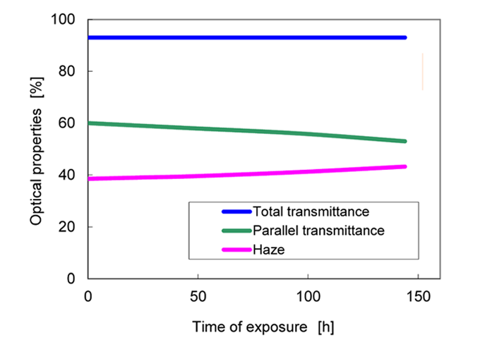 Weatherability test - optical properties Exposure condition: Super UV tester, Fluorescent UV lamps,